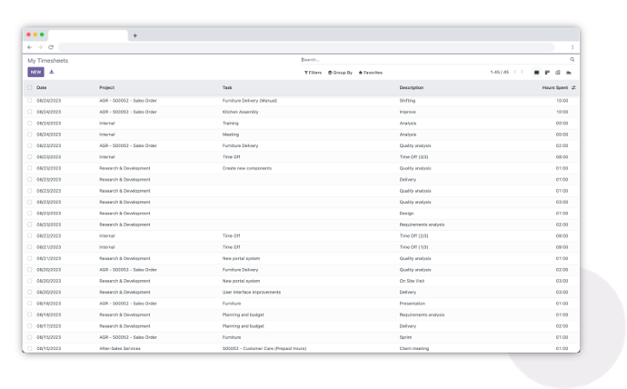 Odoo offers project management in real time. With Odoo, your project team has the best prerequisites for an excellent collaboration and processing of the project tasks. With Odoo you have an overview of all areas of the ongoing projects. Starting with the project overview up to details, as well as contracts and finally the billing.